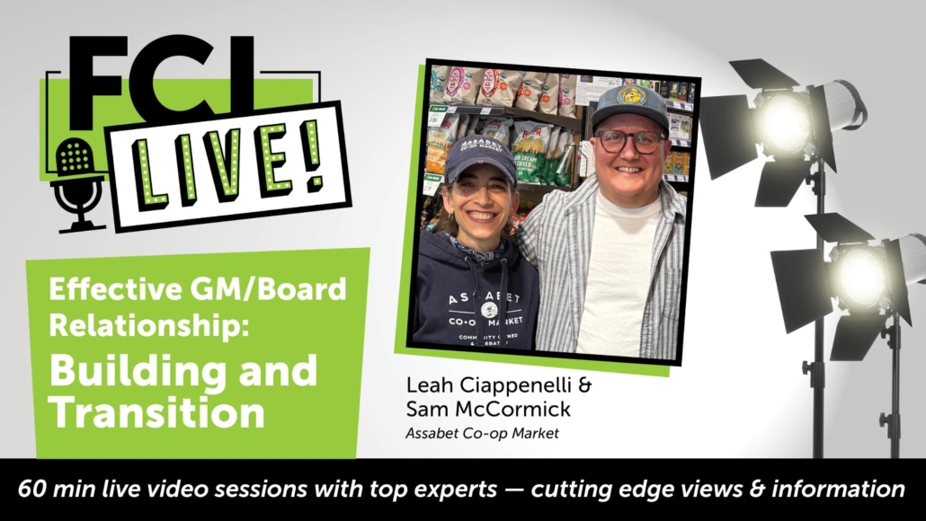There are“working” boards and “governing” boards – one is the way startup food co-op boards function before the store is opened, and then a flip at store opening – right? Nope! From studying and working with startup food co-op GM transitions for the last decade, FCI has identified a unique and critical stage of governance between being a working board and a governing board that spans from when the opening GM is hired to when a startup graduates from Stage 5 organizing. In this session, we’ll review what the transitional governance stage is and what it means to transition “operations” to a GM effectively, rather than fling responsibility at a brand new GM that sets both your GM relationship and possibly your co-op’s entire future on a rocky path.