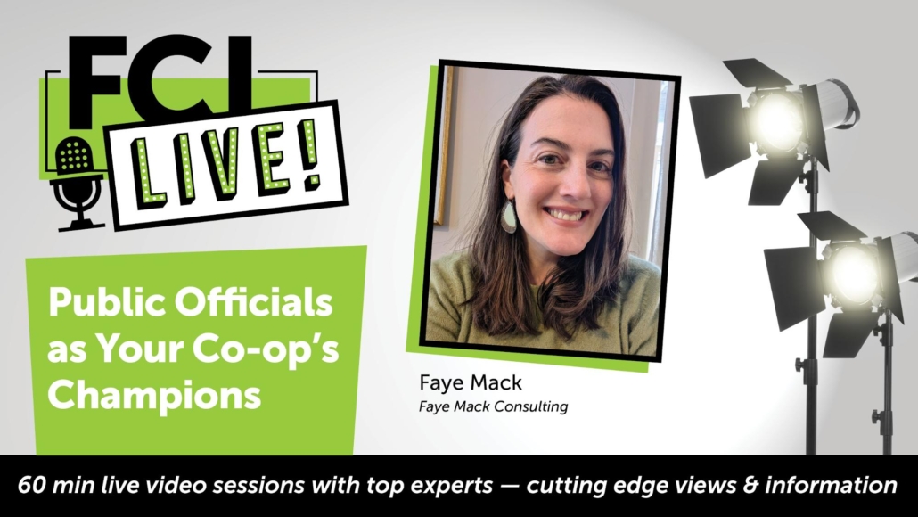 Public officials have a lot of power. They can be vital champions for your co-op… or they can throw up roadblocks. From local administrators on up to members of Congress, strong relationships with public officials can open doors to funding, help you navigate government bureaucracy, and bring positive public attention to your co-op. In this session, you will learn about the ways public officials can support your co-op’s development, how to identify officials to focus on, and the importance of actively maintaining those relationships. Drawing from her experience as a co-op board leader during a major expansion project and years cultivating public officials in advocacy campaigns, Faye Mack will share tangible strategies, tips, and lessons learned. You’ll leave feeling more confident and ready to make a plan with your team!