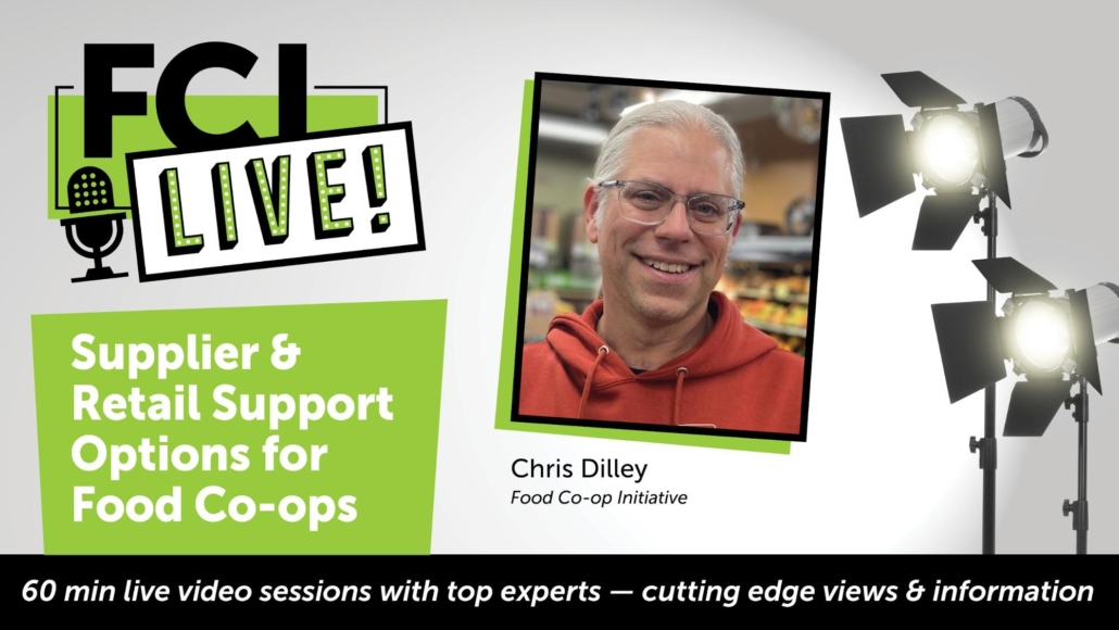 Chris Dilley, Food Co-op Initiative  As startup food co-op efforts develop through the Framework Stages, grappling with the question of where the food their future store will sell is essential, as supplier access, support, and wholesale costs can make or break financial viability. supplier options is inevitable. Finding a good fit for your future co-op’s core supplier relationship is a question of product selection as well as promotional and other supports available. Join Chris Dilley, FCI’s Director of Startup Support, to walk through some of the options available from National Co-op Grocers to INFRA to IGA.