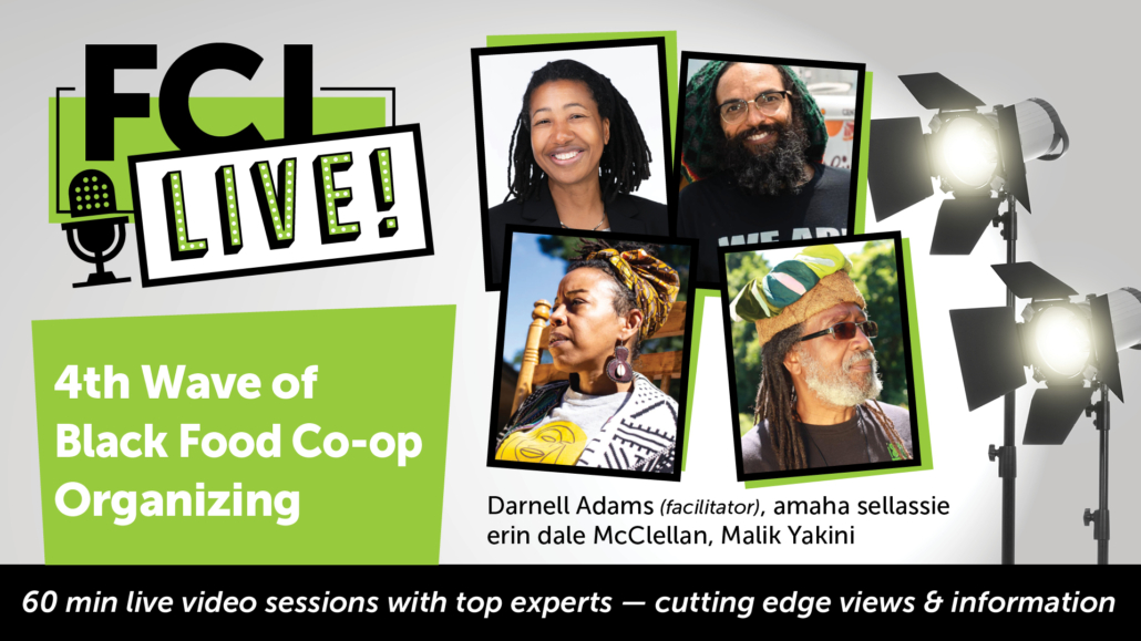 Facilitated by Darnell Adams, Firebrand Cooperative, with panelists amaha sellassie, Gem City Market, erin dale McClellan, Fertile Ground Food Co-op and Malik Yakini, Detroit People’s Food Co-op.